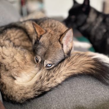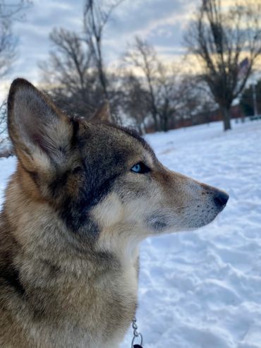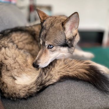 Bear is more than just the mother of our current litters—she’s a true mama bear in every sense. Independent, intelligent, and deeply attuned to her pups, she raises them with a level of care and instinct that sets them apart. With her strong wolf phenotypes—keen awareness, striking features, and that signature high-carried tail—she passes on traits that make her puppies not just dogs, but companions of rare presence and ability. Owners of her last litter consistently rave about their pups’ sharp minds, balanced temperaments, and the kind of loyalty that feels almost mythical. The breeding at Wolves.Dog isn’t just about producing beautiful dogs—it’s about fostering a lineage of intelligent, well-adjusted companions that bring joy, adventure, and a little bit of the wild into the right homes.